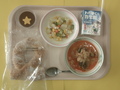 2学期最後の給食はクリスマスメニューです。リースパン・鶏肉のパプリカーシュ・クリスマスカラーサラダ・チョコプリン・牛乳です。パンはクリスマスリースの形をしています。サラダはニンジンの赤、キュウリの緑、チーズの黄色がクリスマスカラーできれいです。デザートのチョコプリンには星形のチョコがかざられていました。子どもたちは最後の給食を笑顔いっぱい、おいしく味わっていました。給食調理員の皆様、2学期もおい...»続きを読む