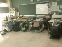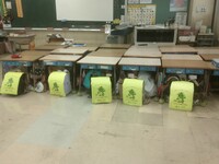 3時間目、竜巻を想定した避難訓練を行いました。竜巻接近の放送が流れ、子どもたちはシェルターの中に入るなど落ち着いて避難行動を取ることができました。